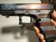 I just purchased this new Gen 4 Glock 19(first ever Glock for us) with a Cerakote flag graphic from Apollo Customs. My wife and I thought it looked cool, and I liked the fact that this is one of the US made ones.